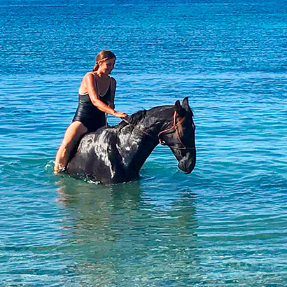 Catalina and Toni, owners, and trainers of the horses in Menorca, lead the rides in Menorca, since2011. They breed their own horses and they are true horse lovers. They come from traditional Menorquín families, deeply in love with this beautiful island “the Pearl of the Mediterranean sea”. With María Elena, they were pioneers in exploring the Camí de Cavalls around the island to create this ride with the most spectacular views of Menorca.